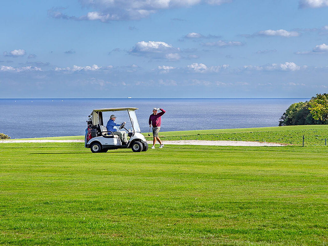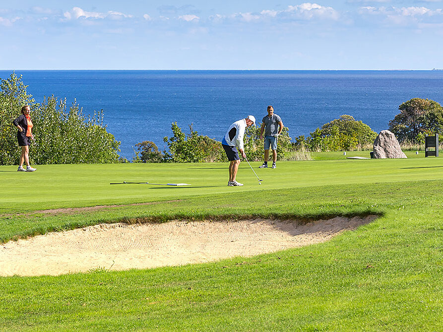 New Course i golfanlægget i Rø tæt på Gudhjem er designet af den internationalt anerkendte golfbanearkitekt Line Mortensen, og blev indviet i år 2005.